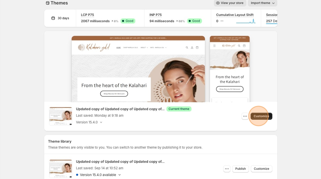 Now we'll add your author bio to appear automatically on every blog post. Navigate to your Online Store > Edit theme (Customize).